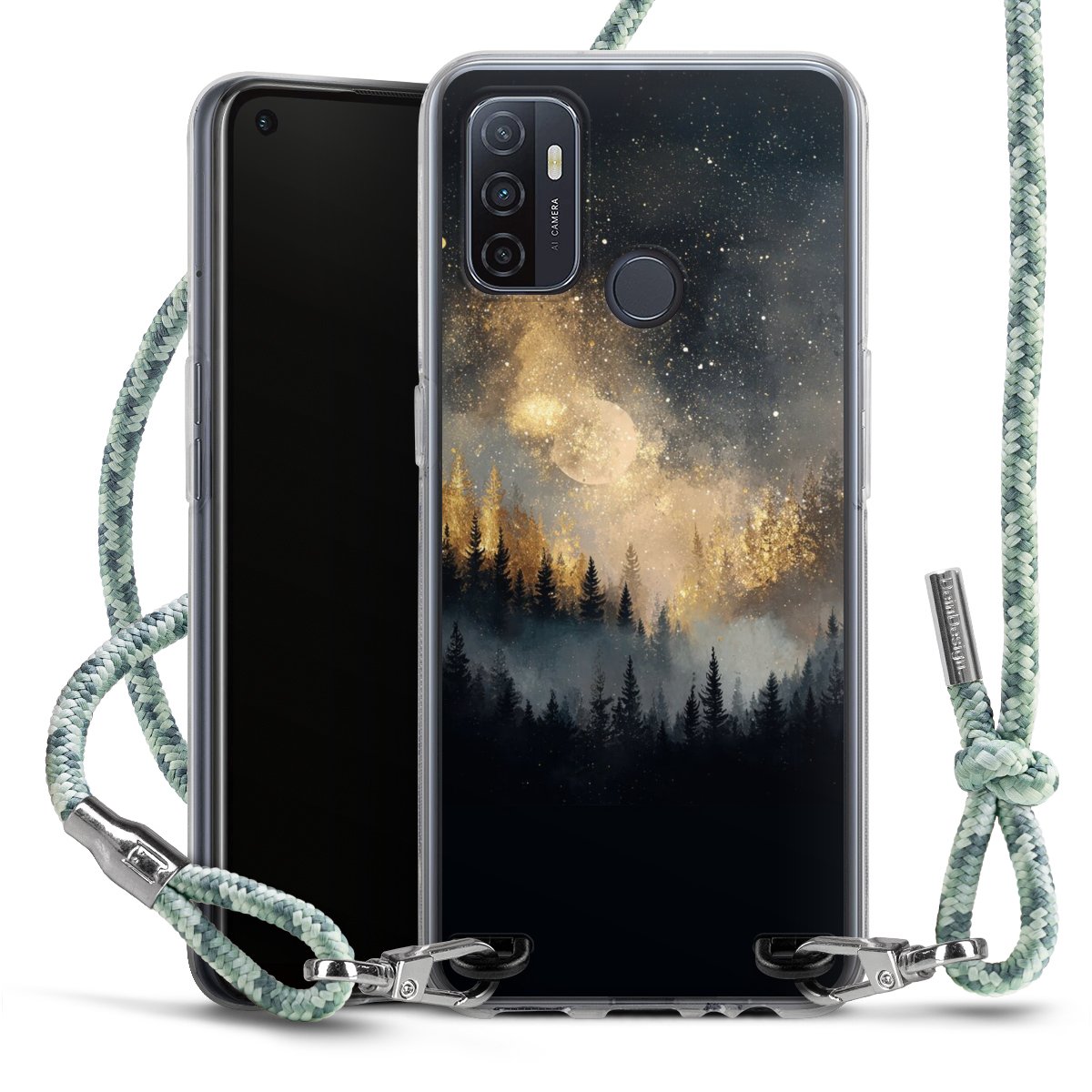 The flexible case is made from a highquality TPU material (thermoplastic Polyurethan). Thanks to its longlasting and break resistant characterisitcs, the case is flexible yet consistent in form and has a great grip and feel. The textile strap made from Polyester gives a chic yet casual accent allowing you to carry your phone like a bag or necklace - a practical gadget perfect for your next adventure. The textile strap is about 1.70 meters long and the length can easily be adjusted through the knots. Our Carry Case is available in Colourful, Mint-Camouflage, Very-Berry, Sahara-Sand and Sparkling-Neon. The ends of the textile strap are covered with metallic end caps to protect them against fraying.