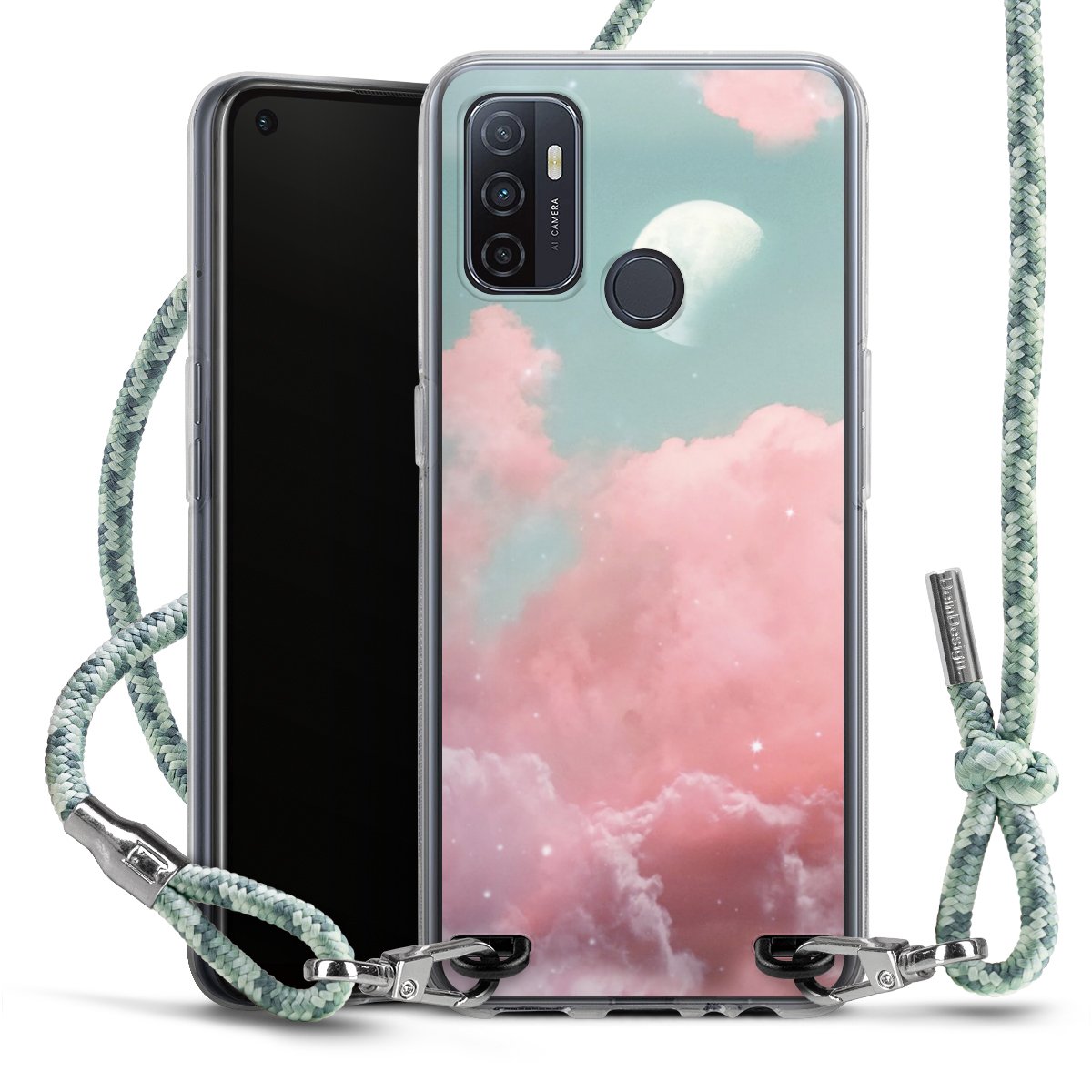 The flexible case is made from a highquality TPU material (thermoplastic Polyurethan). Thanks to its longlasting and break resistant characterisitcs, the case is flexible yet consistent in form and has a great grip and feel. The textile strap made from Polyester gives a chic yet casual accent allowing you to carry your phone like a bag or necklace - a practical gadget perfect for your next adventure. The textile strap is about 1.70 meters long and the length can easily be adjusted through the knots. Our Carry Case is available in Colourful, Mint-Camouflage, Very-Berry, Sahara-Sand and Sparkling-Neon. The ends of the textile strap are covered with metallic end caps to protect them against fraying.