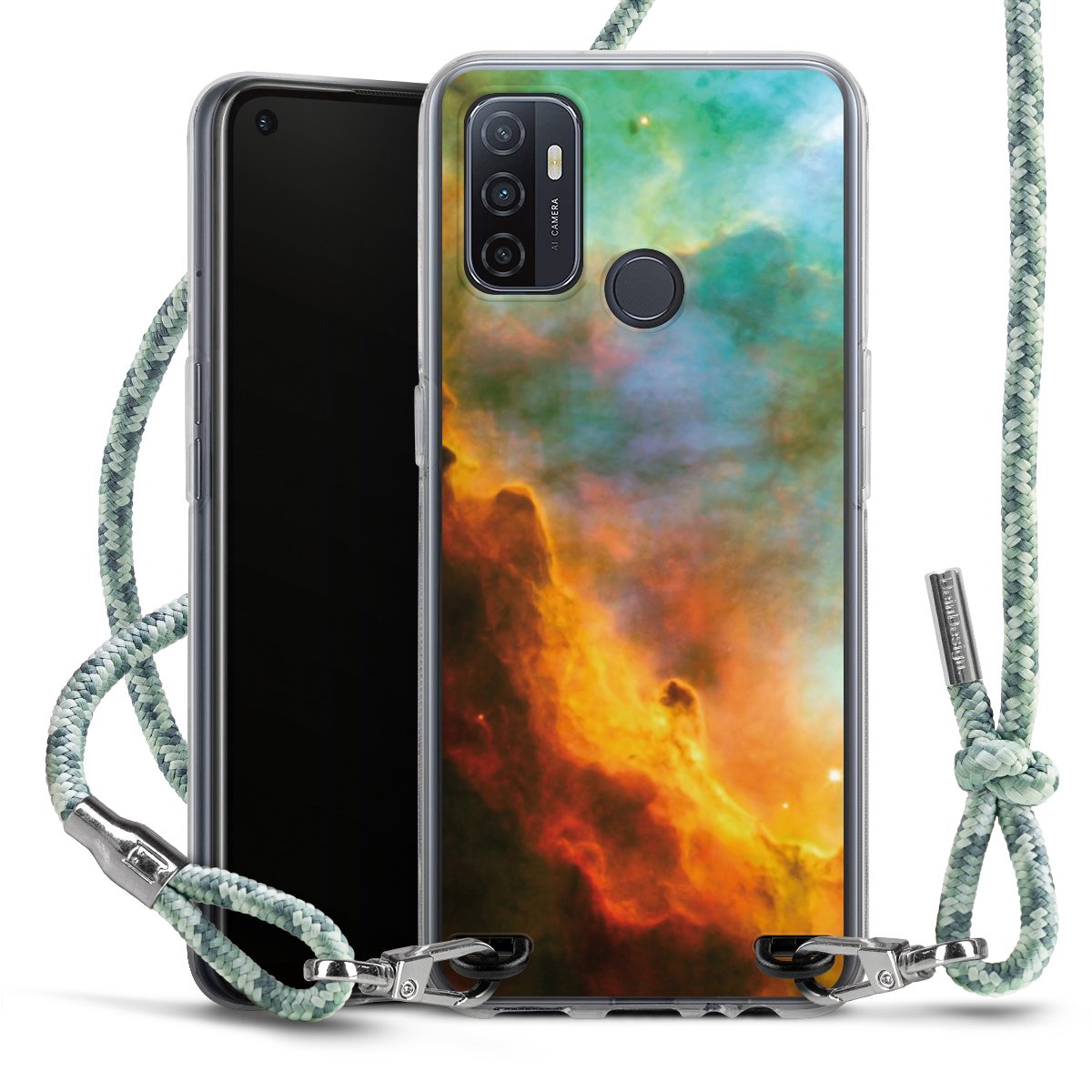 The flexible case is made from a highquality TPU material (thermoplastic Polyurethan). Thanks to its longlasting and break resistant characterisitcs, the case is flexible yet consistent in form and has a great grip and feel. The textile strap made from Polyester gives a chic yet casual accent allowing you to carry your phone like a bag or necklace - a practical gadget perfect for your next adventure. The textile strap is about 1.70 meters long and the length can easily be adjusted through the knots. Our Carry Case is available in Colourful, Mint-Camouflage, Very-Berry, Sahara-Sand and Sparkling-Neon. The ends of the textile strap are covered with metallic end caps to protect them against fraying.