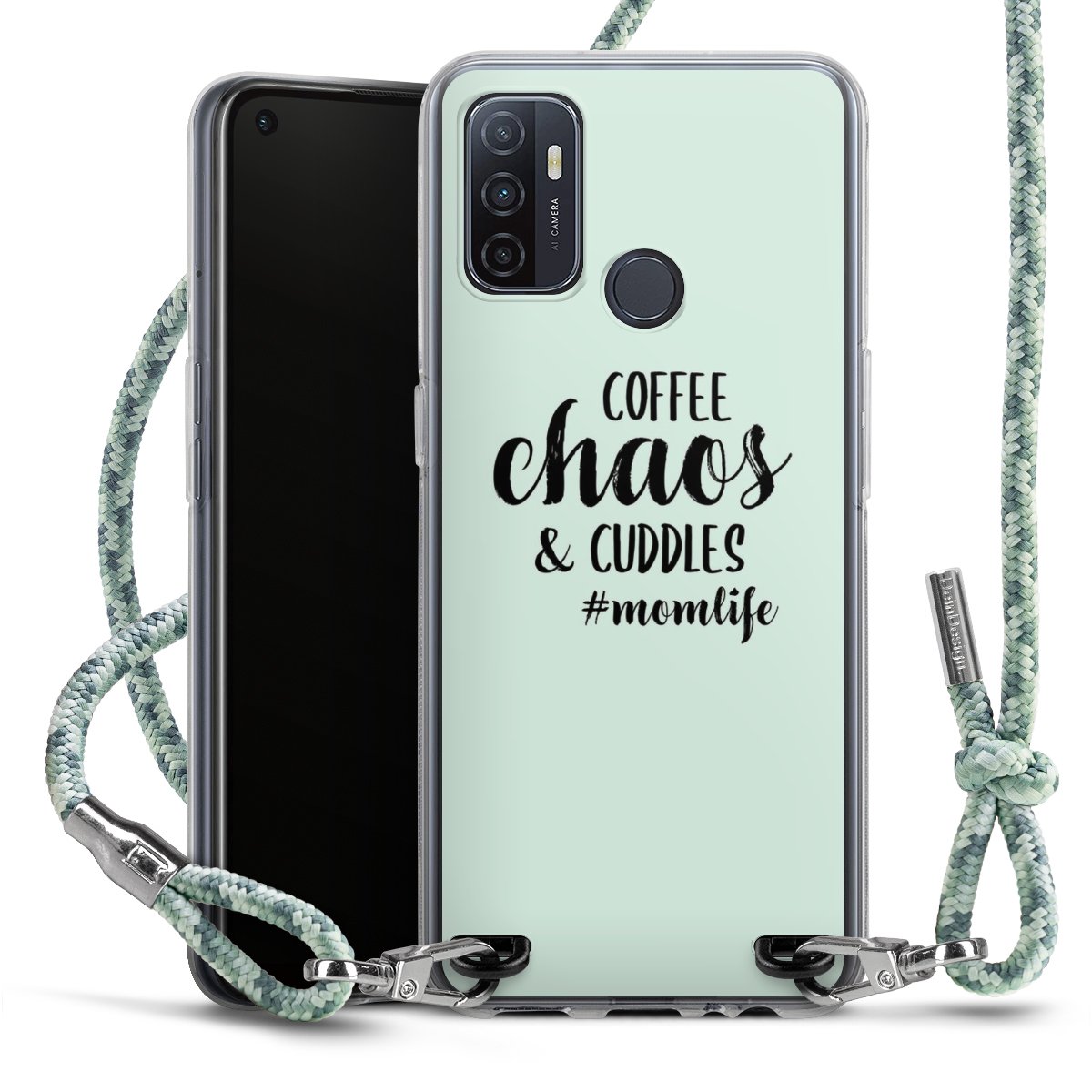 The flexible case is made from a highquality TPU material (thermoplastic Polyurethan). Thanks to its longlasting and break resistant characterisitcs, the case is flexible yet consistent in form and has a great grip and feel. The textile strap made from Polyester gives a chic yet casual accent allowing you to carry your phone like a bag or necklace - a practical gadget perfect for your next adventure. The textile strap is about 1.70 meters long and the length can easily be adjusted through the knots. Our Carry Case is available in Colourful, Mint-Camouflage, Very-Berry, Sahara-Sand and Sparkling-Neon. The ends of the textile strap are covered with metallic end caps to protect them against fraying.