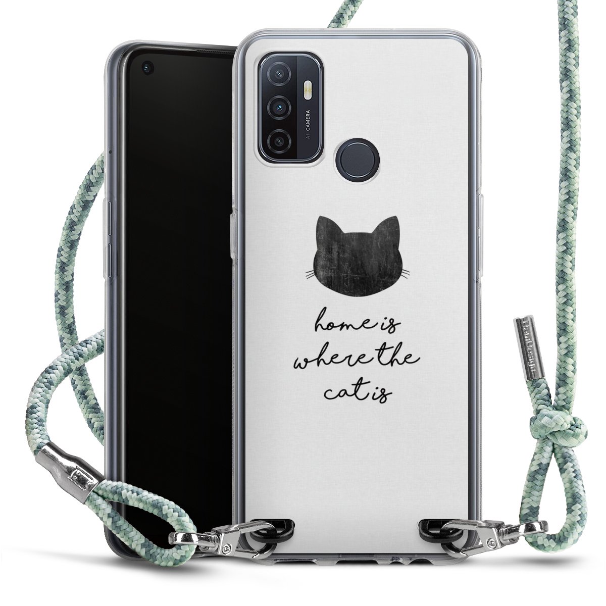 The flexible case is made from a highquality TPU material (thermoplastic Polyurethan). Thanks to its longlasting and break resistant characterisitcs, the case is flexible yet consistent in form and has a great grip and feel. The textile strap made from Polyester gives a chic yet casual accent allowing you to carry your phone like a bag or necklace - a practical gadget perfect for your next adventure. The textile strap is about 1.70 meters long and the length can easily be adjusted through the knots. Our Carry Case is available in Colourful, Mint-Camouflage, Very-Berry, Sahara-Sand and Sparkling-Neon. The ends of the textile strap are covered with metallic end caps to protect them against fraying.