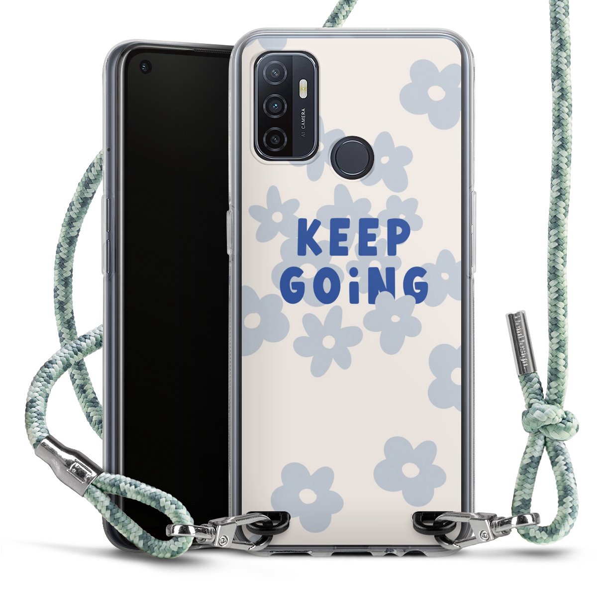 The flexible case is made from a highquality TPU material (thermoplastic Polyurethan). Thanks to its longlasting and break resistant characterisitcs, the case is flexible yet consistent in form and has a great grip and feel. The textile strap made from Polyester gives a chic yet casual accent allowing you to carry your phone like a bag or necklace - a practical gadget perfect for your next adventure. The textile strap is about 1.70 meters long and the length can easily be adjusted through the knots. Our Carry Case is available in Colourful, Mint-Camouflage, Very-Berry, Sahara-Sand and Sparkling-Neon. The ends of the textile strap are covered with metallic end caps to protect them against fraying.