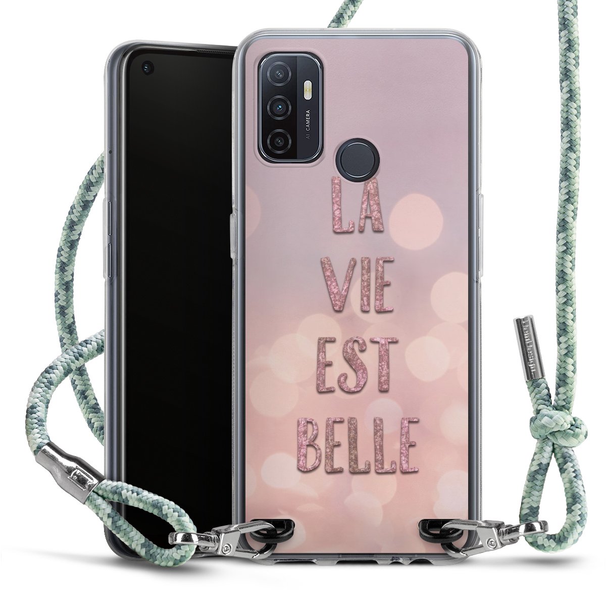 The flexible case is made from a highquality TPU material (thermoplastic Polyurethan). Thanks to its longlasting and break resistant characterisitcs, the case is flexible yet consistent in form and has a great grip and feel. The textile strap made from Polyester gives a chic yet casual accent allowing you to carry your phone like a bag or necklace - a practical gadget perfect for your next adventure. The textile strap is about 1.70 meters long and the length can easily be adjusted through the knots. Our Carry Case is available in Colourful, Mint-Camouflage, Very-Berry, Sahara-Sand and Sparkling-Neon. The ends of the textile strap are covered with metallic end caps to protect them against fraying.