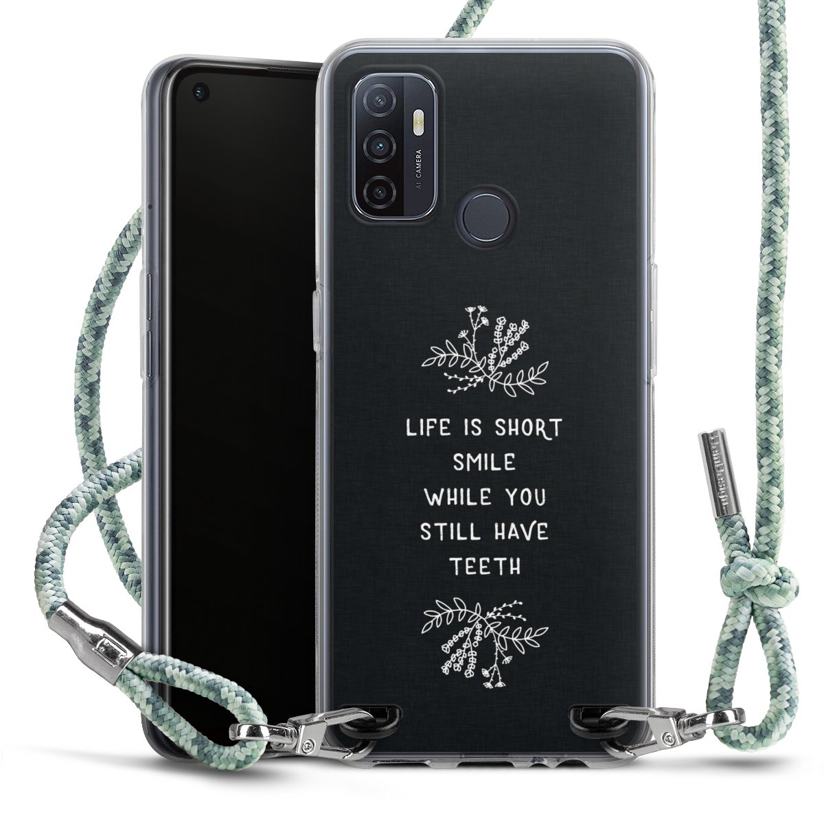 The flexible case is made from a highquality TPU material (thermoplastic Polyurethan). Thanks to its longlasting and break resistant characterisitcs, the case is flexible yet consistent in form and has a great grip and feel. The textile strap made from Polyester gives a chic yet casual accent allowing you to carry your phone like a bag or necklace - a practical gadget perfect for your next adventure. The textile strap is about 1.70 meters long and the length can easily be adjusted through the knots. Our Carry Case is available in Colourful, Mint-Camouflage, Very-Berry, Sahara-Sand and Sparkling-Neon. The ends of the textile strap are covered with metallic end caps to protect them against fraying.