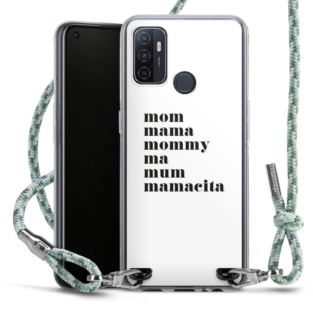 The flexible case is made from a highquality TPU material (thermoplastic Polyurethan). Thanks to its longlasting and break resistant characterisitcs, the case is flexible yet consistent in form and has a great grip and feel. The textile strap made from Polyester gives a chic yet casual accent allowing you to carry your phone like a bag or necklace - a practical gadget perfect for your next adventure. The textile strap is about 1.70 meters long and the length can easily be adjusted through the knots. Our Carry Case is available in Colourful, Mint-Camouflage, Very-Berry, Sahara-Sand and Sparkling-Neon. The ends of the textile strap are covered with metallic end caps to protect them against fraying.