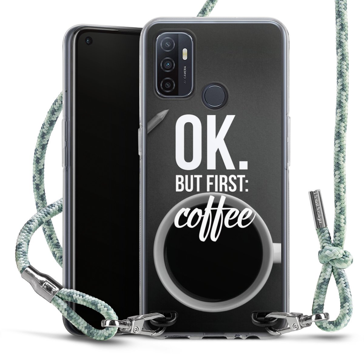The flexible case is made from a highquality TPU material (thermoplastic Polyurethan). Thanks to its longlasting and break resistant characterisitcs, the case is flexible yet consistent in form and has a great grip and feel. The textile strap made from Polyester gives a chic yet casual accent allowing you to carry your phone like a bag or necklace - a practical gadget perfect for your next adventure. The textile strap is about 1.70 meters long and the length can easily be adjusted through the knots. Our Carry Case is available in Colourful, Mint-Camouflage, Very-Berry, Sahara-Sand and Sparkling-Neon. The ends of the textile strap are covered with metallic end caps to protect them against fraying.