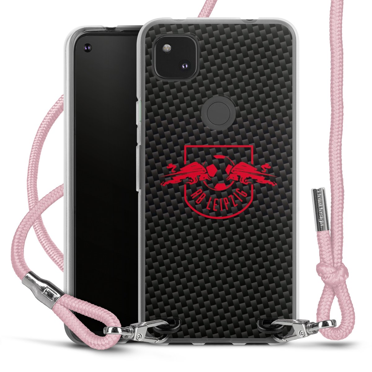 Red RB Leipzig logo on carbon look