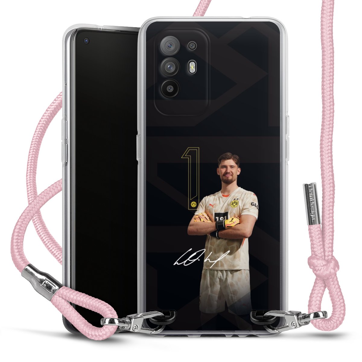 Keep your phone handy at all times, thanks to the flexible silicone case with a textile strap.