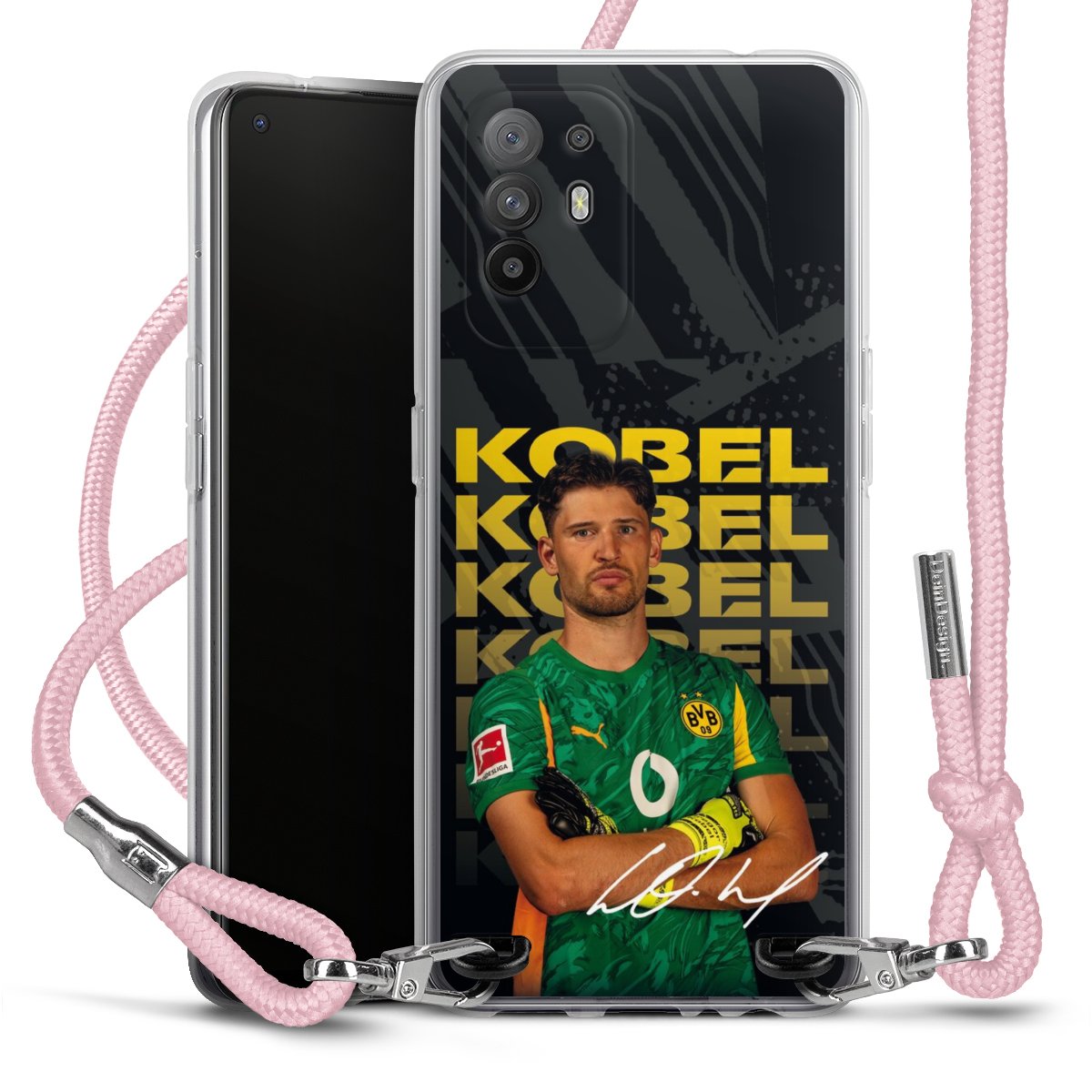 Keep your phone handy at all times, thanks to the flexible silicone case with a textile strap.