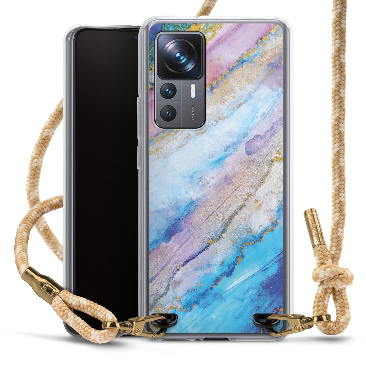 The flexible case is made from a highquality TPU material (thermoplastic Polyurethan). Thanks to its longlasting and break resistant characterisitcs, the case is flexible yet consistent in form and has a great grip and feel. The textile strap made from Polyester gives a chic yet casual accent allowing you to carry your phone like a bag or necklace - a practical gadget perfect for your next adventure. The textile strap is about 1.70 meters long and the length can easily be adjusted through the knots. Our Carry Case is available in Colourful, Mint-Camouflage, Very-Berry, Sahara-Sand and Sparkling-Neon. The ends of the textile strap are covered with metallic end caps to protect them against fraying.