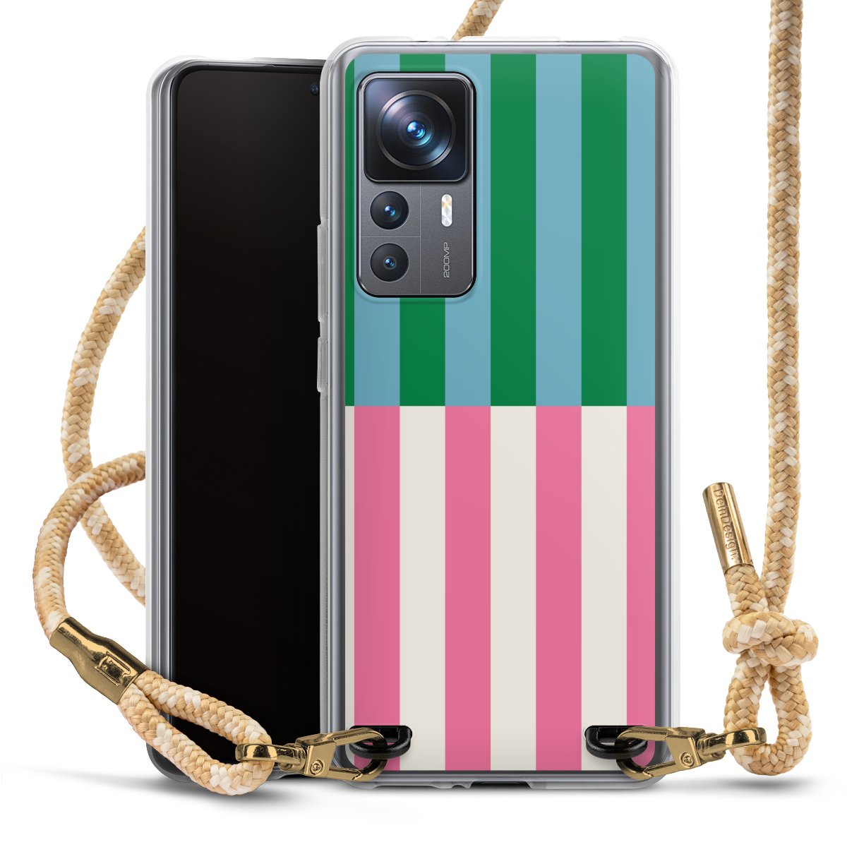 The flexible case is made from a highquality TPU material (thermoplastic Polyurethan). Thanks to its longlasting and break resistant characterisitcs, the case is flexible yet consistent in form and has a great grip and feel. The textile strap made from Polyester gives a chic yet casual accent allowing you to carry your phone like a bag or necklace - a practical gadget perfect for your next adventure. The textile strap is about 1.70 meters long and the length can easily be adjusted through the knots. Our Carry Case is available in Colourful, Mint-Camouflage, Very-Berry, Sahara-Sand and Sparkling-Neon. The ends of the textile strap are covered with metallic end caps to protect them against fraying.