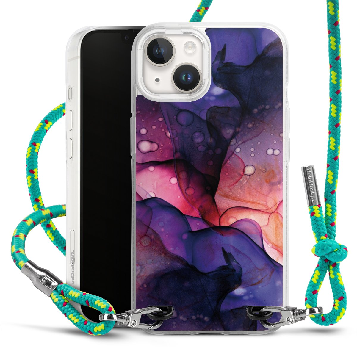 The flexible case is made from a highquality TPU material (thermoplastic Polyurethan). Thanks to its longlasting and break resistant characterisitcs, the case is flexible yet consistent in form and has a great grip and feel. The textile strap made from Polyester gives a chic yet casual accent allowing you to carry your phone like a bag or necklace - a practical gadget perfect for your next adventure. The textile strap is about 1.70 meters long and the length can easily be adjusted through the knots. Our Carry Case is available in Colourful, Mint-Camouflage, Very-Berry, Sahara-Sand and Sparkling-Neon. The ends of the textile strap are covered with metallic end caps to protect them against fraying.