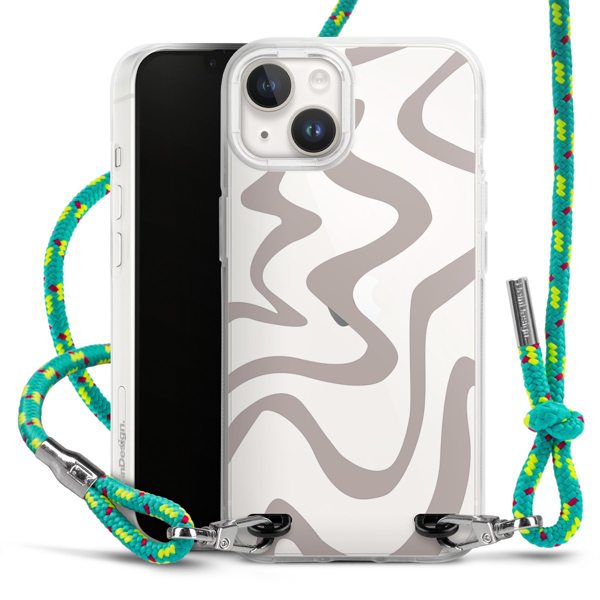 The flexible case is made from a highquality TPU material (thermoplastic Polyurethan). Thanks to its longlasting and break resistant characterisitcs, the case is flexible yet consistent in form and has a great grip and feel. The textile strap made from Polyester gives a chic yet casual accent allowing you to carry your phone like a bag or necklace - a practical gadget perfect for your next adventure. The textile strap is about 1.70 meters long and the length can easily be adjusted through the knots. Our Carry Case is available in Colourful, Mint-Camouflage, Very-Berry, Sahara-Sand and Sparkling-Neon. The ends of the textile strap are covered with metallic end caps to protect them against fraying.