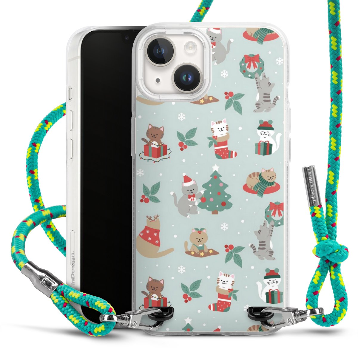 Cute Winter Wonderland Christmas Festive Cats on Teal