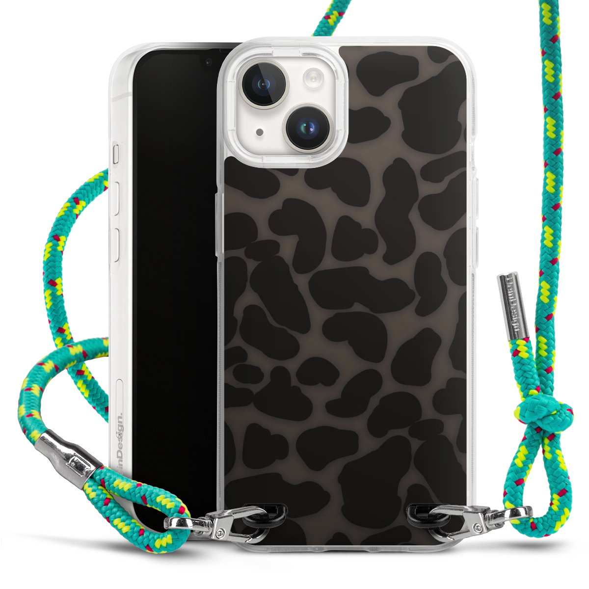 The flexible case is made from a highquality TPU material (thermoplastic Polyurethan). Thanks to its longlasting and break resistant characterisitcs, the case is flexible yet consistent in form and has a great grip and feel. The textile strap made from Polyester gives a chic yet casual accent allowing you to carry your phone like a bag or necklace - a practical gadget perfect for your next adventure. The textile strap is about 1.70 meters long and the length can easily be adjusted through the knots. Our Carry Case is available in Colourful, Mint-Camouflage, Very-Berry, Sahara-Sand and Sparkling-Neon. The ends of the textile strap are covered with metallic end caps to protect them against fraying.