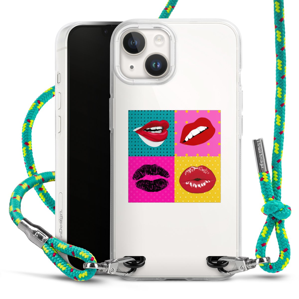 The flexible case is made from a highquality TPU material (thermoplastic Polyurethan). Thanks to its longlasting and break resistant characterisitcs, the case is flexible yet consistent in form and has a great grip and feel. The textile strap made from Polyester gives a chic yet casual accent allowing you to carry your phone like a bag or necklace - a practical gadget perfect for your next adventure. The textile strap is about 1.70 meters long and the length can easily be adjusted through the knots. Our Carry Case is available in Colourful, Mint-Camouflage, Very-Berry, Sahara-Sand and Sparkling-Neon. The ends of the textile strap are covered with metallic end caps to protect them against fraying.