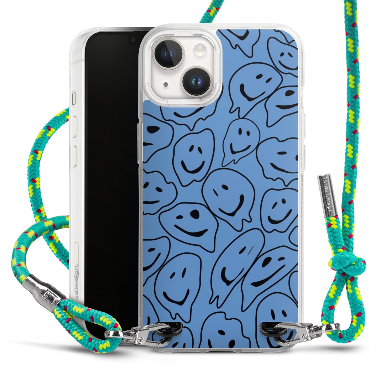 The flexible case is made from a highquality TPU material (thermoplastic Polyurethan). Thanks to its longlasting and break resistant characterisitcs, the case is flexible yet consistent in form and has a great grip and feel. The textile strap made from Polyester gives a chic yet casual accent allowing you to carry your phone like a bag or necklace - a practical gadget perfect for your next adventure. The textile strap is about 1.70 meters long and the length can easily be adjusted through the knots. Our Carry Case is available in Colourful, Mint-Camouflage, Very-Berry, Sahara-Sand and Sparkling-Neon. The ends of the textile strap are covered with metallic end caps to protect them against fraying.