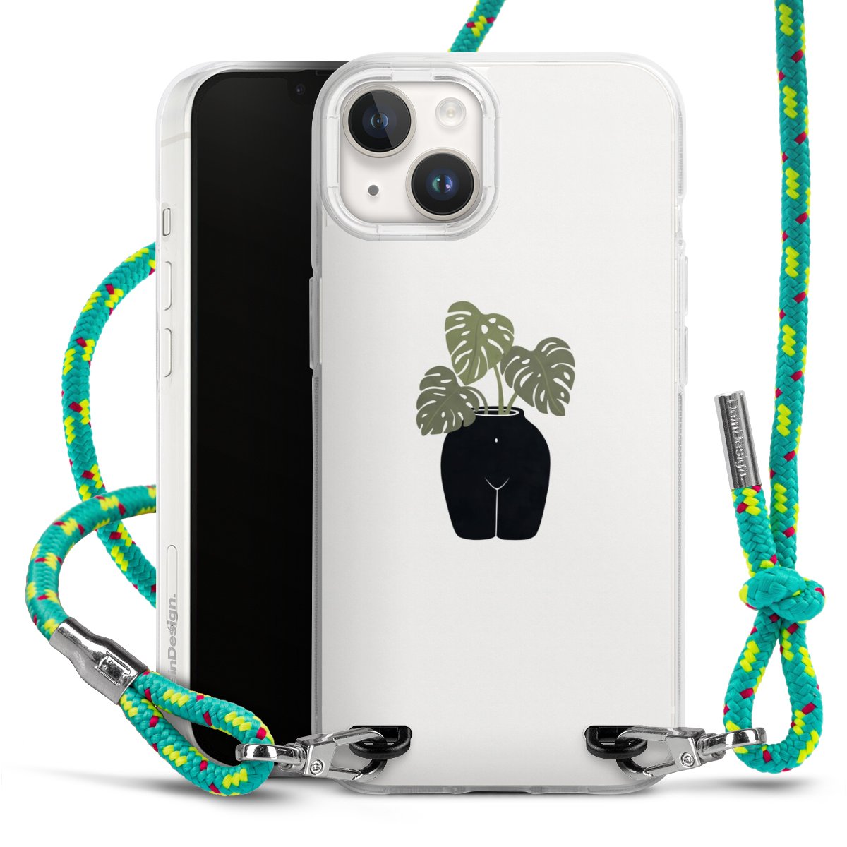 The flexible case is made from a highquality TPU material (thermoplastic Polyurethan). Thanks to its longlasting and break resistant characterisitcs, the case is flexible yet consistent in form and has a great grip and feel. The textile strap made from Polyester gives a chic yet casual accent allowing you to carry your phone like a bag or necklace - a practical gadget perfect for your next adventure. The textile strap is about 1.70 meters long and the length can easily be adjusted through the knots. Our Carry Case is available in Colourful, Mint-Camouflage, Very-Berry, Sahara-Sand and Sparkling-Neon. The ends of the textile strap are covered with metallic end caps to protect them against fraying.
