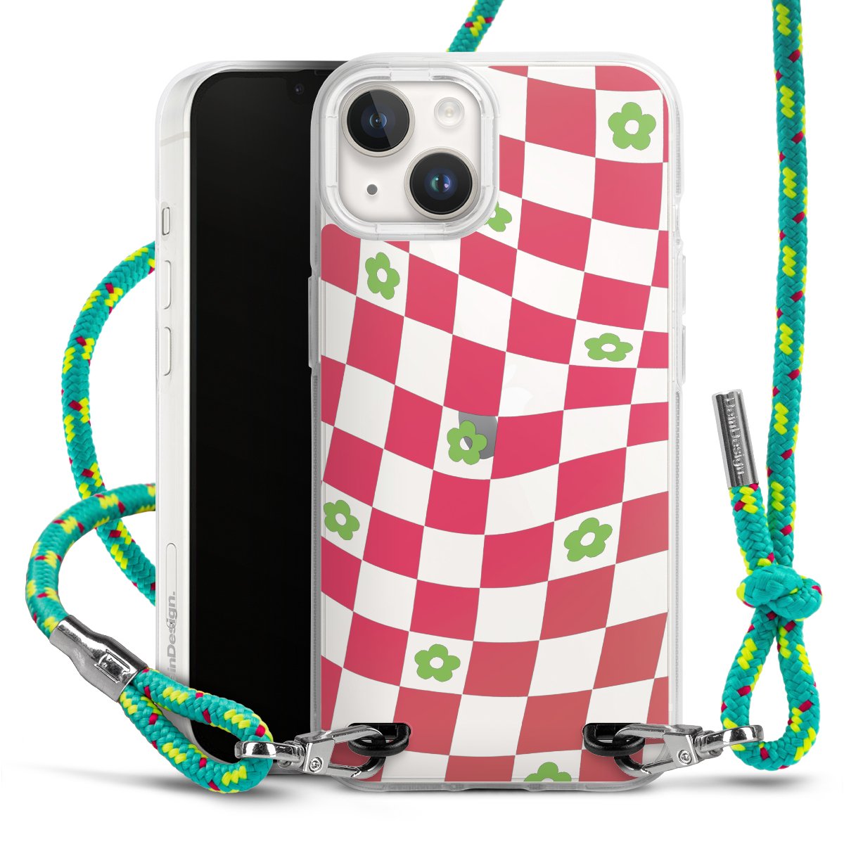 The flexible case is made from a highquality TPU material (thermoplastic Polyurethan). Thanks to its longlasting and break resistant characterisitcs, the case is flexible yet consistent in form and has a great grip and feel. The textile strap made from Polyester gives a chic yet casual accent allowing you to carry your phone like a bag or necklace - a practical gadget perfect for your next adventure. The textile strap is about 1.70 meters long and the length can easily be adjusted through the knots. Our Carry Case is available in Colourful, Mint-Camouflage, Very-Berry, Sahara-Sand and Sparkling-Neon. The ends of the textile strap are covered with metallic end caps to protect them against fraying.