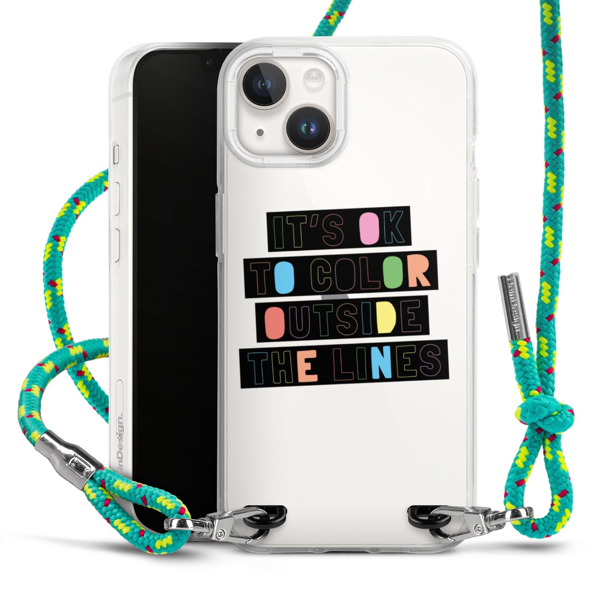 The flexible case is made from a highquality TPU material (thermoplastic Polyurethan). Thanks to its longlasting and break resistant characterisitcs, the case is flexible yet consistent in form and has a great grip and feel. The textile strap made from Polyester gives a chic yet casual accent allowing you to carry your phone like a bag or necklace - a practical gadget perfect for your next adventure. The textile strap is about 1.70 meters long and the length can easily be adjusted through the knots. Our Carry Case is available in Colourful, Mint-Camouflage, Very-Berry, Sahara-Sand and Sparkling-Neon. The ends of the textile strap are covered with metallic end caps to protect them against fraying.