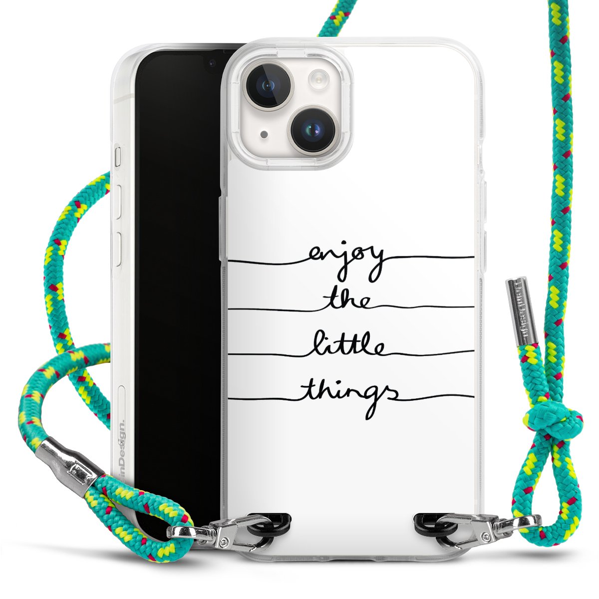 The flexible case is made from a highquality TPU material (thermoplastic Polyurethan). Thanks to its longlasting and break resistant characterisitcs, the case is flexible yet consistent in form and has a great grip and feel. The textile strap made from Polyester gives a chic yet casual accent allowing you to carry your phone like a bag or necklace - a practical gadget perfect for your next adventure. The textile strap is about 1.70 meters long and the length can easily be adjusted through the knots. Our Carry Case is available in Colourful, Mint-Camouflage, Very-Berry, Sahara-Sand and Sparkling-Neon. The ends of the textile strap are covered with metallic end caps to protect them against fraying.