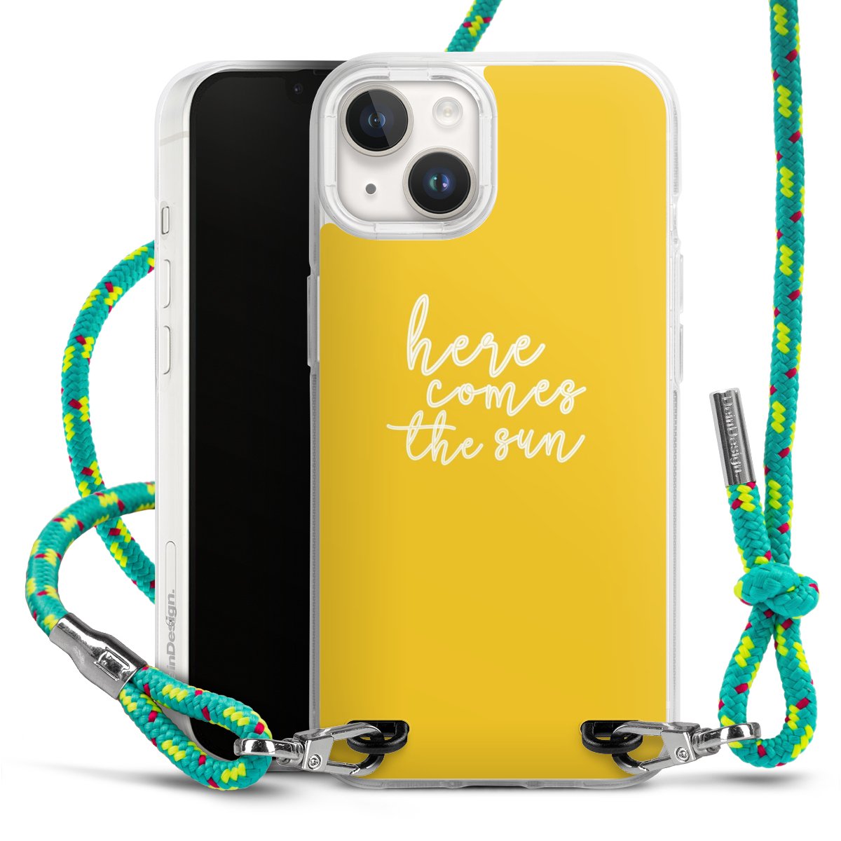 The flexible case is made from a highquality TPU material (thermoplastic Polyurethan). Thanks to its longlasting and break resistant characterisitcs, the case is flexible yet consistent in form and has a great grip and feel. The textile strap made from Polyester gives a chic yet casual accent allowing you to carry your phone like a bag or necklace - a practical gadget perfect for your next adventure. The textile strap is about 1.70 meters long and the length can easily be adjusted through the knots. Our Carry Case is available in Colourful, Mint-Camouflage, Very-Berry, Sahara-Sand and Sparkling-Neon. The ends of the textile strap are covered with metallic end caps to protect them against fraying.