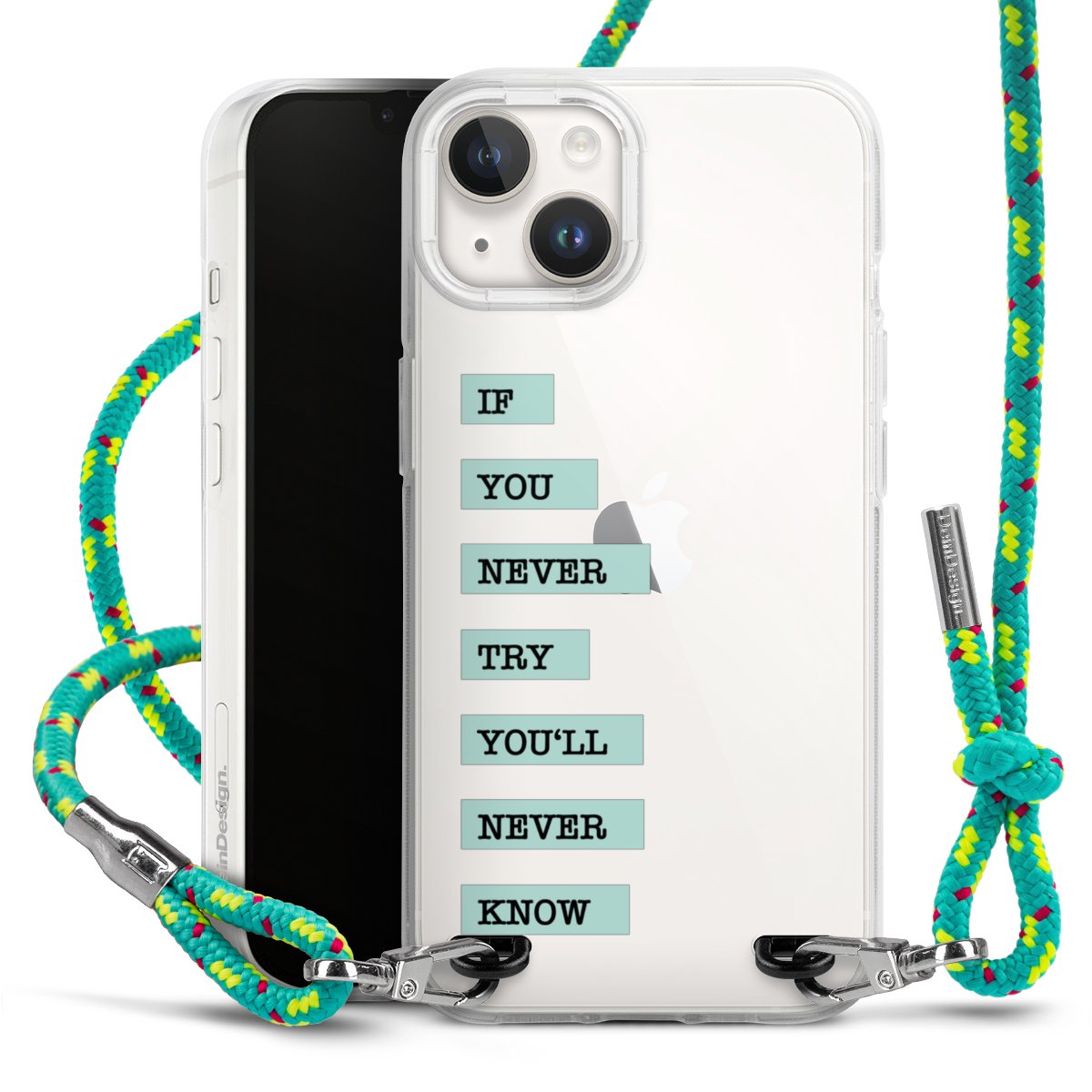 The flexible case is made from a highquality TPU material (thermoplastic Polyurethan). Thanks to its longlasting and break resistant characterisitcs, the case is flexible yet consistent in form and has a great grip and feel. The textile strap made from Polyester gives a chic yet casual accent allowing you to carry your phone like a bag or necklace - a practical gadget perfect for your next adventure. The textile strap is about 1.70 meters long and the length can easily be adjusted through the knots. Our Carry Case is available in Colourful, Mint-Camouflage, Very-Berry, Sahara-Sand and Sparkling-Neon. The ends of the textile strap are covered with metallic end caps to protect them against fraying.