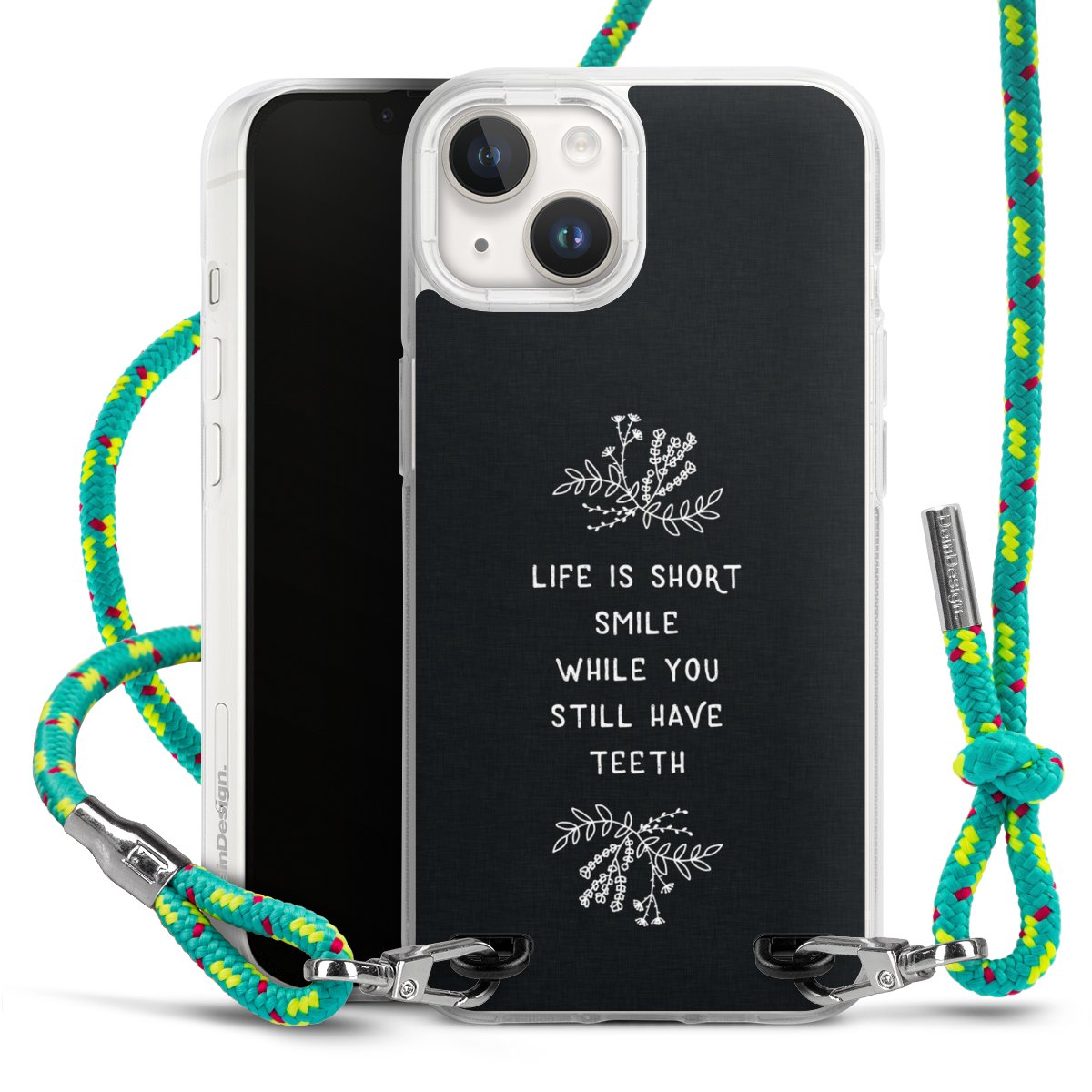 The flexible case is made from a highquality TPU material (thermoplastic Polyurethan). Thanks to its longlasting and break resistant characterisitcs, the case is flexible yet consistent in form and has a great grip and feel. The textile strap made from Polyester gives a chic yet casual accent allowing you to carry your phone like a bag or necklace - a practical gadget perfect for your next adventure. The textile strap is about 1.70 meters long and the length can easily be adjusted through the knots. Our Carry Case is available in Colourful, Mint-Camouflage, Very-Berry, Sahara-Sand and Sparkling-Neon. The ends of the textile strap are covered with metallic end caps to protect them against fraying.