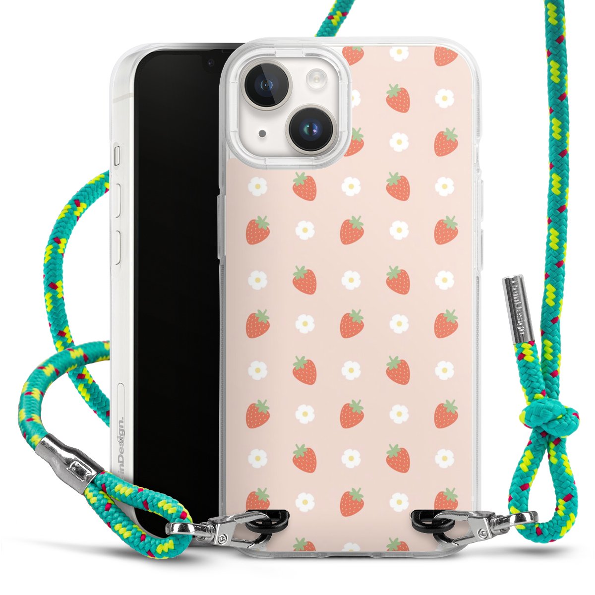 The flexible case is made from a highquality TPU material (thermoplastic Polyurethan). Thanks to its longlasting and break resistant characterisitcs, the case is flexible yet consistent in form and has a great grip and feel. The textile strap made from Polyester gives a chic yet casual accent allowing you to carry your phone like a bag or necklace - a practical gadget perfect for your next adventure. The textile strap is about 1.70 meters long and the length can easily be adjusted through the knots. Our Carry Case is available in Colourful, Mint-Camouflage, Very-Berry, Sahara-Sand and Sparkling-Neon. The ends of the textile strap are covered with metallic end caps to protect them against fraying.