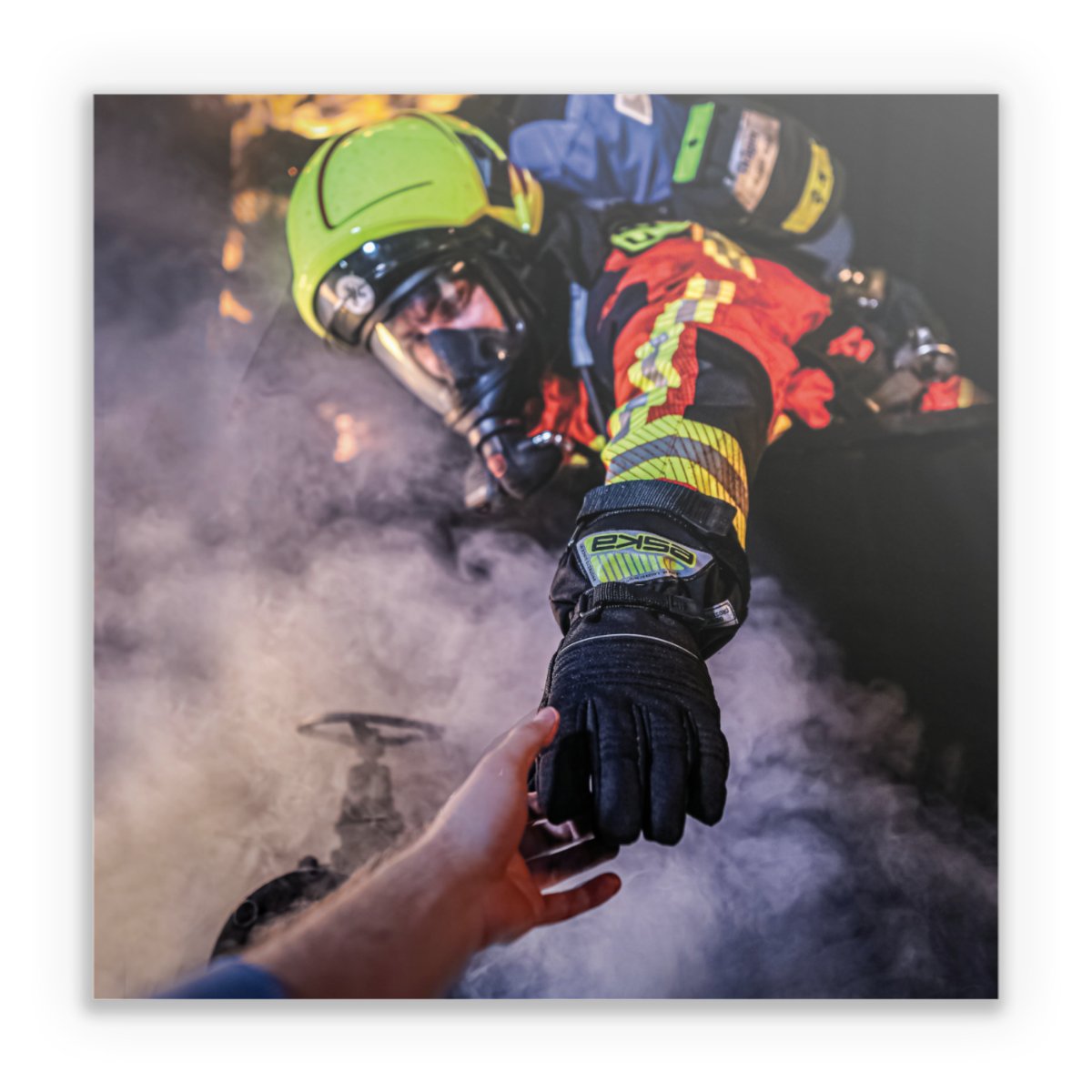 Firefighter Reaches for Hand