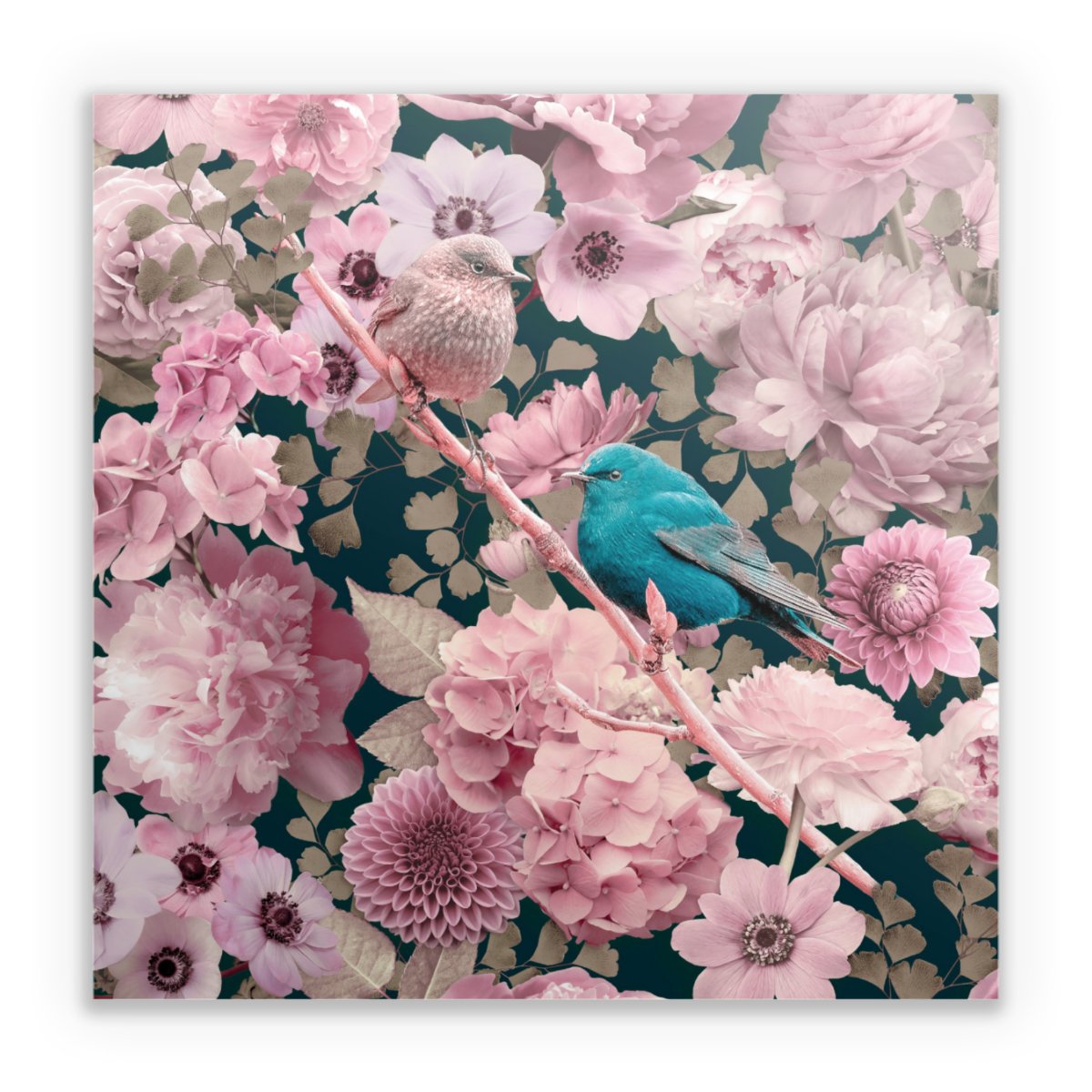 Sparrows in Pink Flower Pattern