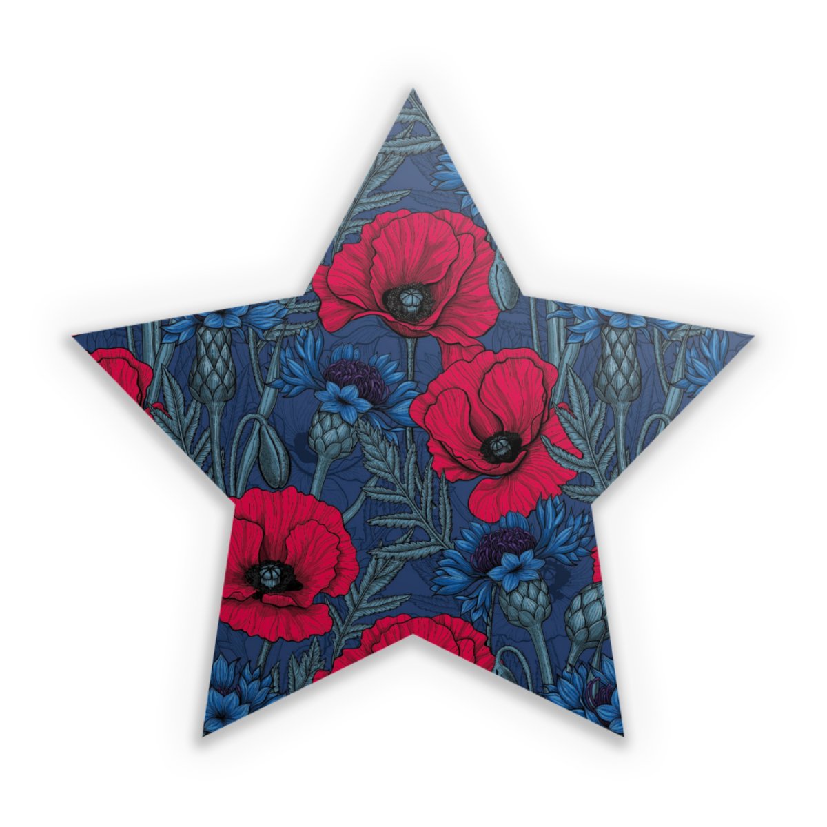 Poppies and Cornflowers on Blue